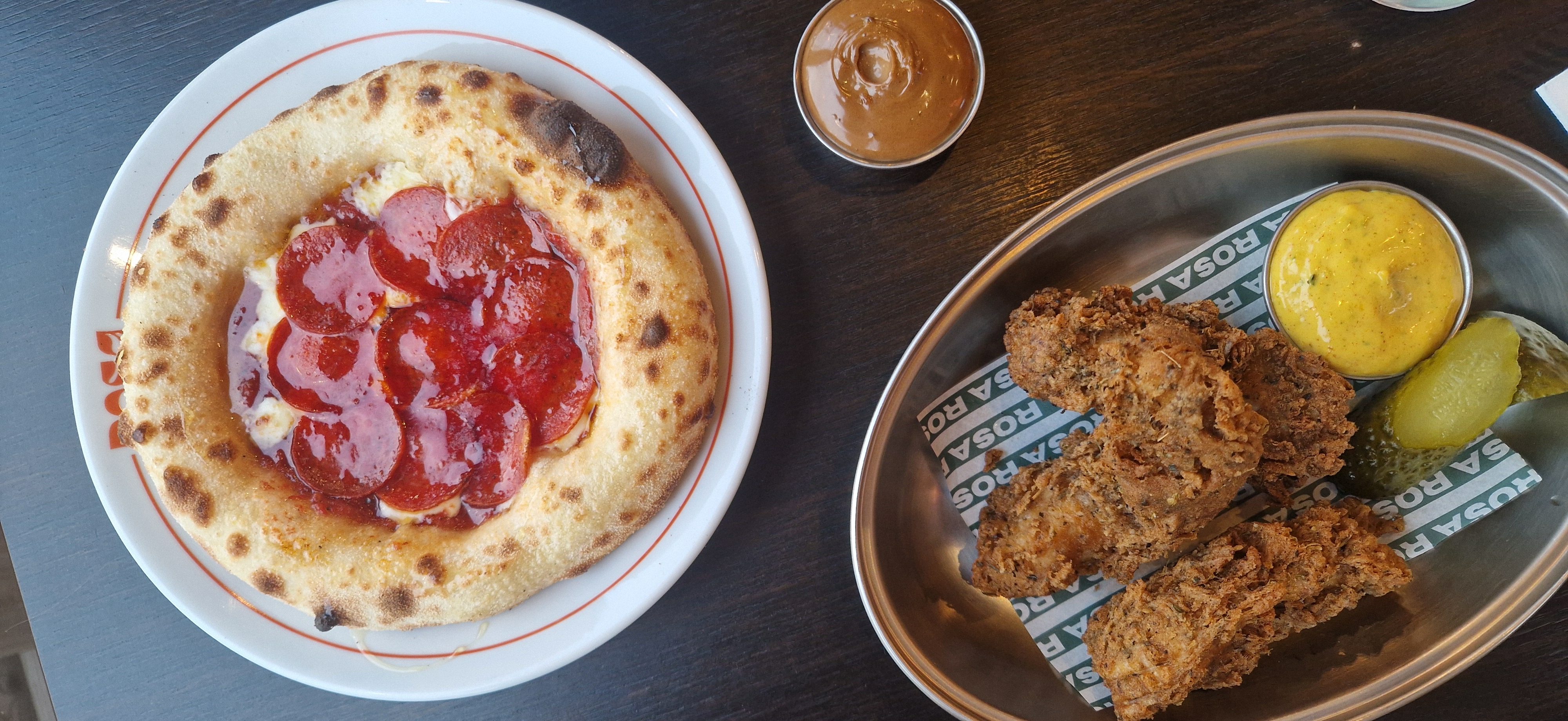 When I finally had to make a decision, I panicked and ordered the jumbo chicken tenders with pickles and a choice of sauce, and the pepperoni & hot honey pizzetta. Honestly though I could have ordered another 5 things, it all looked too good, I am still thinking about the deep fried lasagne today!